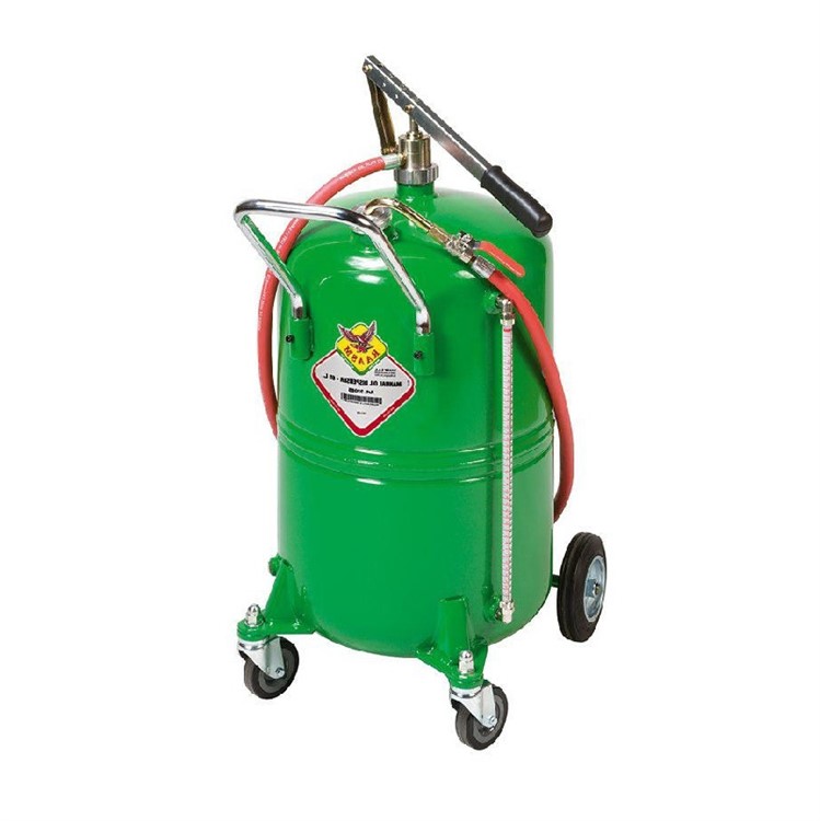 Kompletta pumputrustningar inkl. behållare om 65 liter och 2 m 1/2" utloppsslang med oljeventil. Dubbelverkande handpump, med tre inställningsmöjligheter vilket ger en kapacitet av max. 0,25 l/dubbelslag. Utrustningen är anpassad för påfyllning av oljor upp till SAE 240