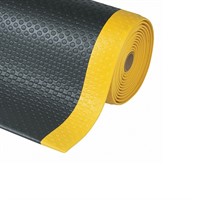 Arbetsmatta för torra miljöer med unik bubbel-design som skapar väldigt hög komfort, 4,2 /m2. Yta av exklusiv Dyna-Shield som förlänger hållbarheten med 50%. Alla 4 sidor är avfasade för att minimera snubbelrisk. Halk-resistens R10 enligt DIN51130 och BGR181. Gula kanter längs sidorna uppfyller OSHA koden 1910-144. Rekommenderad användning: medeltung industri.