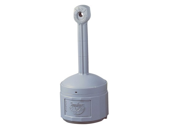 Smoker’s Cease-Fire®. Praktisk askopp av eldfast PE som kväver elden och fimparna släcks omgående utan risk för brand. Galvaniserad hink inuti som enkelt kan tömmas.