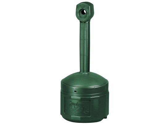 Smoker’s Cease-Fire®. Praktisk askopp av eldfast PE som kväver elden och fimparna släcks omgående utan risk för brand. Galvaniserad hink inuti som enkelt kan tömmas.