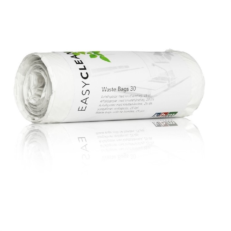 Plastpåse med knythandtag i LD/LLD 30L, se är ett bra alternativ då den är stark och smidig.