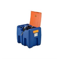 Blue-Mobile Easy 210L med lock för AdBlue elektrisk pump Centri SP30*, 12V, 25L/min, auto pistolventil, 4M slang, 4M elkabel, DN 19 påfyllningsanslutning med lock. Enkelväggig behållare av godkänd polyeten, med inbyggda truckgaffelfickor och bärhandtag, bandstyrningar för säker transport.