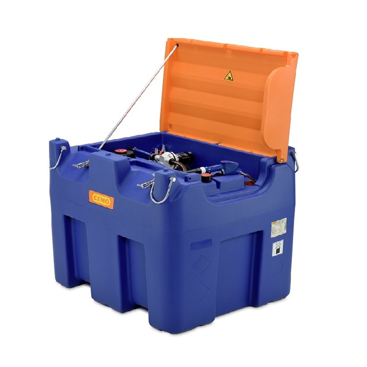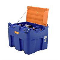 Blue-Mobile Easy 980L för AdBlue med lock, elektrisk Diafragmapump 12V, 30L/min, auto munstycke, 4M slang, 4M elkabel, DN 19 påfyllningsanslutning med lock, ventilation med tryckavlastning. Enkelväggig behållare av godkänd polyeten, med inbyggda truckgaffelfickor och bärhandtag, kranöglor bandstyrningar för säker transport.