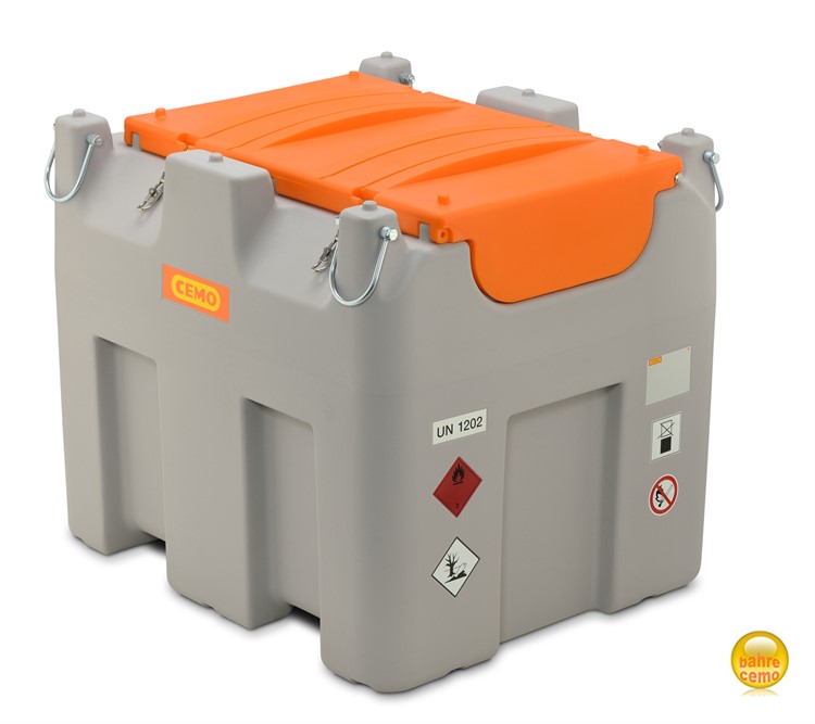 DT Mobil Easy 980L ADR Premium Transporttank för diesel inkl. lock och elektrisk Cematic 72, 230V, automunstycke, 72L/min. 8M slang och 4M elkabel. Slangvinda , flödesmätare, filter med vattenavskiljare, PE enkelvägg, utrustad med intergrerad påfyllning, inbyggd ventilation och tryckavlastning, gaffeltrucksfickor, handtag och munstyckehållare, inbyggda kranöglor för lyft och säker snurrning vid transport. Godkänd för transport, återkommande test efter 2½ år enligt ADR 6.5.4.4.1b) Transporttillstånd begränsad till 5 år.