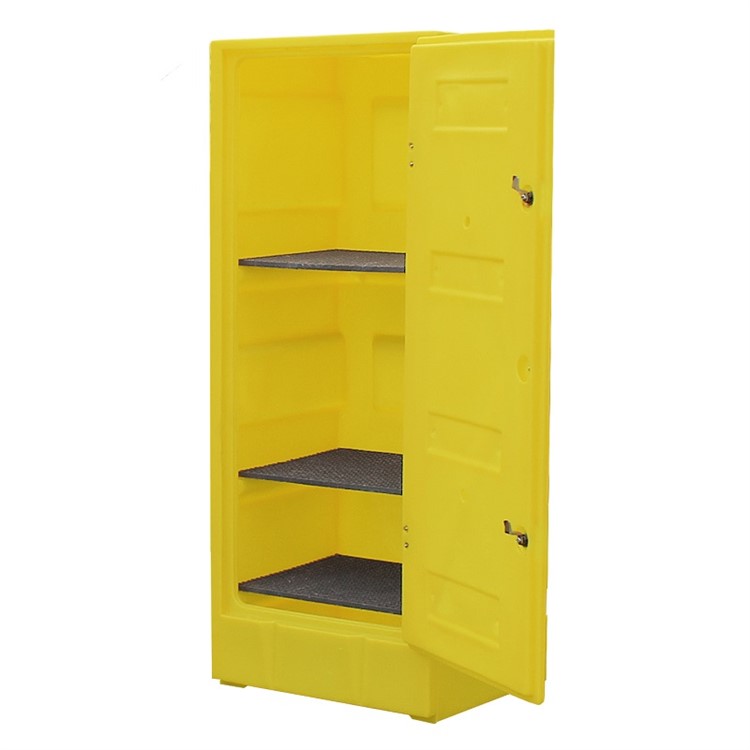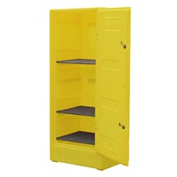 Förvaringsdepå L, låsbar, 70L är perfekta för förvaring av fat, små behållare eller för användning som spillanläggning. Tillverkade av polyeten vilket ger utmärkt kemikalieresistens och hållbarhet. Skåpen finns med justerbara / flyttbara hyllor och låsbara dörrar.