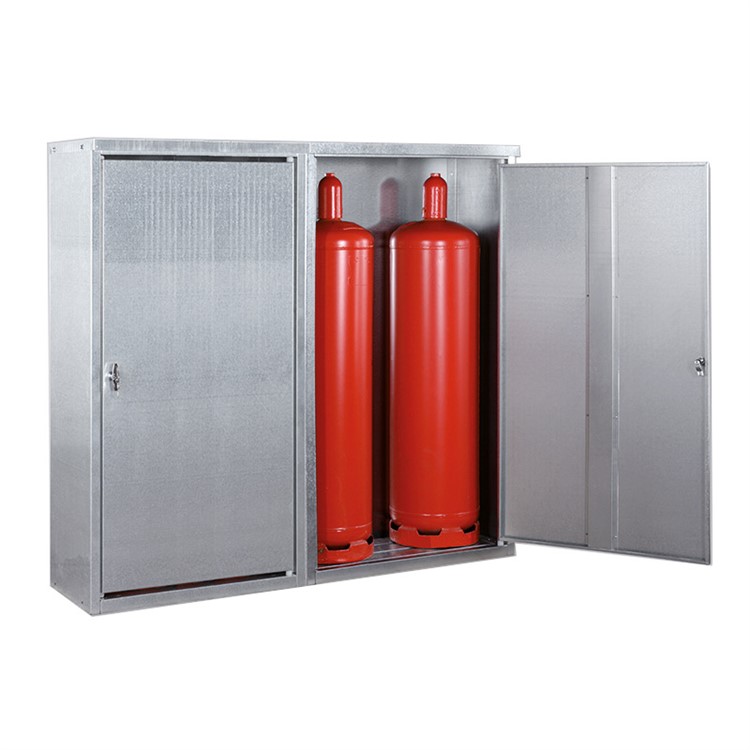 Gasflakeskåp för lagring av propanflaskor inom och utomhus. Robusta skåp som är konstruerade av varmförzinkad stålplåt. Stabilt golv som ställyta. Ventilation via öppningar ovanför och nedanför dörren/dörrarna. Låsbara dörr med cylinderlås (2 nycklar ingår). Märkning med varningssymbol. Levereras monterade. Kapacitet: 4x33kg flaska. 2 dörrar. Uppfyller reglerna om förvaring av gasflaskor enligt AFS 2017:3.