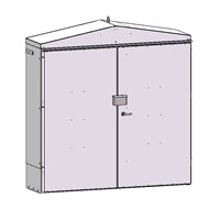 Gasförråd 580 för förvaring inom och utomhus. För 4 stycken P45, 2 dörrar, Oisolerat, ZnAlMg. Använd skåpets förankringspunkter för att förankra skåpet i vägg eller underlag. Konstruktionen är av 1,5 mm Zinkbelagd stålkärna ZnAlMg, detta är en metallbeläggning som ger skydd i de tuffaste miljöerna. ZnAlMg har avsevärt bättre korrosionsmotstånd än varmförzinkat stål. En av ZnAlMg stora fördelar är dess förmåga att självläka klippta och perforerade kanter. Plåten har en hårdare yta och är reptåligare än traditionellt varmgalvat material. Plåten kan målas på samma sätt som andra metallbelagda stål. Skåpet bultas och nitas ihop. Låsning sker med 3-punkts låshake och hänglås (bygelhöjd 25mm). Godkänd försäkringsklass 2. Dörröppning 100º. Ventilation “självdrag”. Invändiga ej synliga gångjärn med avhakningssäkring. Invändigt mått L2080xB470xH1920mm. Transportmått L2080xB470xH1920mm..