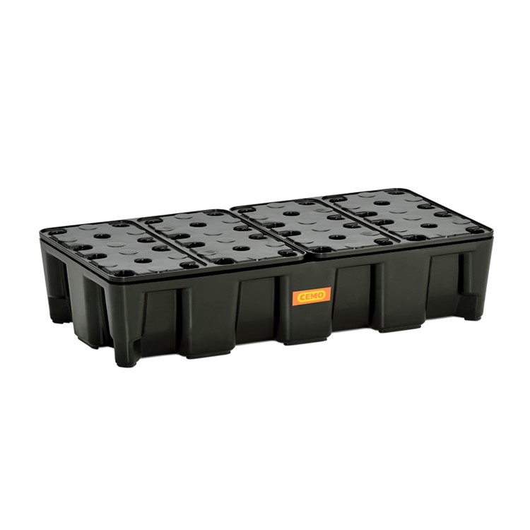 Spillkar 35HD, med PE galler, 35L, svart, robust arbetsgolv av HDPE, med smart överfyllnadsskydd, lämplig till förvaring av mindre dunkar, tål de flesta kemikalier. Godkännande enligt DIBt.