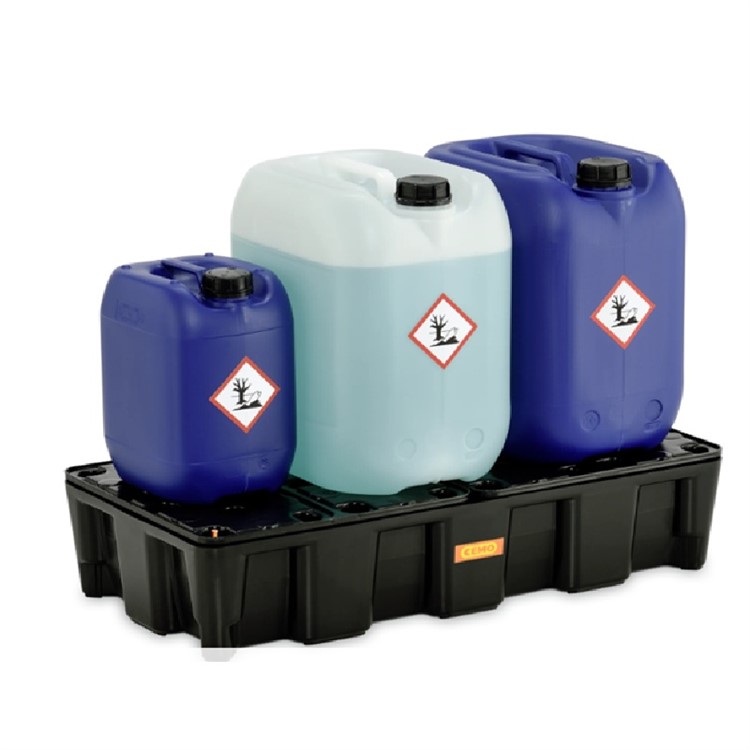 Spillkar 35HD, med PE galler, 35L, svart, robust arbetsgolv av HDPE, med smart överfyllnadsskydd, lämplig till förvaring av mindre dunkar, tål de flesta kemikalier.