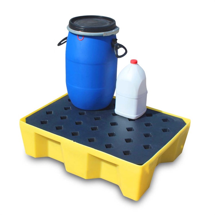 Spilltråg med galler för mindre behållare. Mindre uppsamlingskar i PE, idealisk för lagring och hantering av små behållare. Resistent mot de flesta kemikalier. Enkel att rengöra. Uppsamlingsvolym 66L.