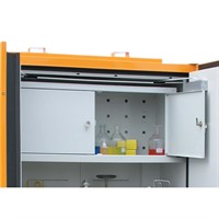Säkerhetsskåp för förvaring av små mängder giftiga och mycket giftiga ämnen i 90 minuters StoreLAB säkerhetsskåp. Placeras med fördel på befinligt hyllplan. Dörr/ Dörrar kan låsas med cylinderlås 2 nycklar/dörr ingår. Inkl. montagetillbehör för fastsättning i skåpet, stående på hyllplan.