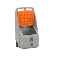 Förvaringsbox Go-Box 70L. Kan användas inomhus och utomhus och eftersom locket är placerat i vinkel rinner vattnet lätt av. Utrustad med ett rostfritt lås, som även kan stängas med ett hänglås. Total kapacitet på 70 liter, ca 50 kg granulat. Lätt att flytta tack vare smart viktfördelning och gummihjul. Lätt att rengöra.