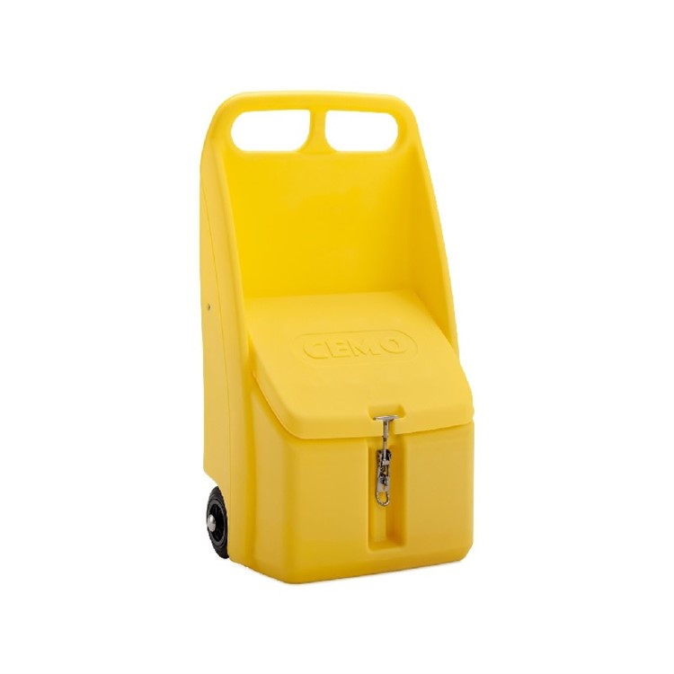 Förvaringsbox Go-Box 70L. Kan användas inomhus och utomhus och eftersom locket är placerat i vinkel rinner vattnet lätt av. Utrustad med ett rostfritt lås, som även kan stängas med ett hänglås. Total kapacitet på 70 liter, ca 50 kg granulat. Lätt att flytta tack vare smart viktfördelning och gummihjul. Lätt att rengöra.