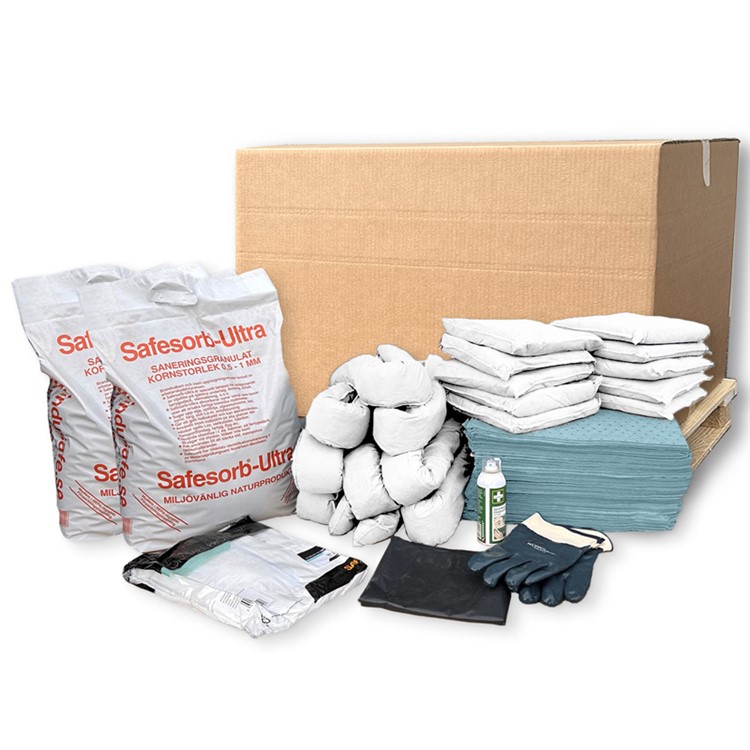 Påfyllnadssats till Oil Only Mobilt SpillKit SRKO250, 250L. Innehåller: 100st Oil Only ark, 10st Oil Only kuddar, 10st Oil Only ormar, 1 par skyddshandskar, 1st skyddsdräkt, 5st avfallspåsar, 2st påsar granulat (2x10kg).