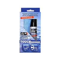 PRF Touchscreen Kit, Antistatiskt rengöringsmedel för skärmar och högklassig microfiberduk. Bruksanvisning: Spraya medlet på rent tyg eller papper och torka skärmen. Användning: Alla TFT-, LCD- och plasmaskärmar.