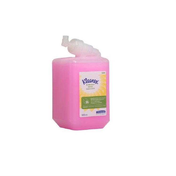Kleenex® Everyday Tvål, normal 1L. Premieformeln av Kleenex® handtvål renar effektivt och tar hand om huden. Den här lyxiga blommiga handtvålen ger den perfekta handhygienen i din arbetsplats och är väl lämpad för användning i kontor, sjukhus och livsmedelshanteringsindustrier. De kostnadseffektiva 1L patronen ger upp till 1111 handtvättar. Förseglad, lätt att ladda, patroner skyddar tvålen före användning, förhindrar kontaminering. Den här premiumformeln av hög kvalitet är idealisk hand hygienlösning för tvättstugor på arbetsplatsen.