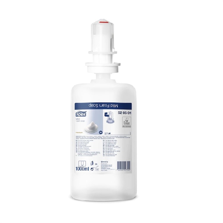 Mild Skumtvål är en perfekt handtvål för regelbunden tvätt på kontor, hotell, restauranger och offentliga toalettutrymmen. Tvålen fördelas enkelt över händerna och ger ett rikt och krämigt skum med lödder. En skumtvålflaska ger 2500 doseringar, vilket innebär färre byten Tvål med närande ingredienser som återfuktar huden Försluten refillflaska ger bättre hygien Flaskan krymper ihop efter hand som den används för minskad avfallsvolym Pumptvålen passar till Tork tvålpump S4 Miljöcertifierad med EU Ecolabel. Oöppnad flaska kan lagras i 5 år. Bäst före datum 12 månader efter öppnad förp.